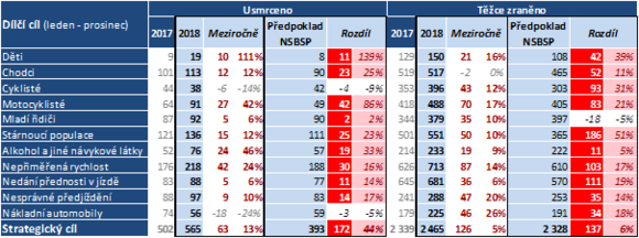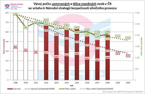 Rok 2018 přinesl z hlediska počtu usmrcených a těžce zraněných osob při dopravních nehodách nepříznivé statistiky. Zatímco v roce 2017 zemřelo na našich silnicích nejméně lidí v historii České republiky, v loňském roce došlo k nárůstu o 13 % v počtu usmrcených a o 5 % v počtu těžce zraněných. Nejčastější příčinou dopravních nehod dlouhodobě zůstává nepřiměřená rychlost, v některých krajích se tento prohřešek podílel na všech usmrcených i více než z poloviny . Loňský rok byl za posledních osm let nejhorší také z hlediska počtu usmrcených motocyklistů. U osmi krajů došlo meziročně k nárůstu počtu usmrcených i těžce zraněných osob. Meziročně nejvíce usmrcených osob bylo evidováno ve Středočeském kraji. Srovnání jednotlivých krajů a podrobné vyhodnocení roku 2018 z pohledu dílčích cílů Národní strategie bezpečnosti silničního provozu naleznete zde.