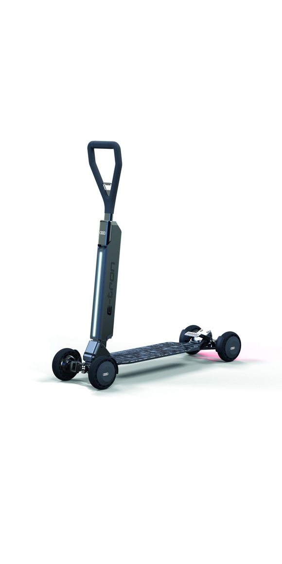 Audi reaguje na městský trend multimodální dopravy novým konceptem elektrické koloběžky. Model Audi e-tron Scooter je koncipován pro sportovně založené jezdce a kombinuje pozitivní vlastnosti elektricky poháněné koloběžky a skateboardu. Uživatel může elektrickou koloběžku o hmotnosti dvanáct kilogramů snadno složit a přepravovat ji automobilem, autobusem nebo vlakem. Při chůzi ji může táhnout za sebou jako nákupní tašku s kolečky. Audi e-tron Scooter se však odlišuje především svým ovládáním, při němž jezdec pohybuje tělem podobně jako surfař. Jezdec má jednu ruku volnou, může se rozhlížet po okolí a dávat znamení rukou. Audi plánuje zahájení výroby a prodeje na konec roku 2020.