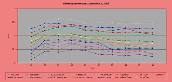 | 46. týden | 32,23 | 32,44 | 31,81 | 32,74 | 31,93 |
