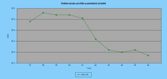 | 45. týden | 32,22 | 32,72 | 31,76 | 32,54 | 32 |