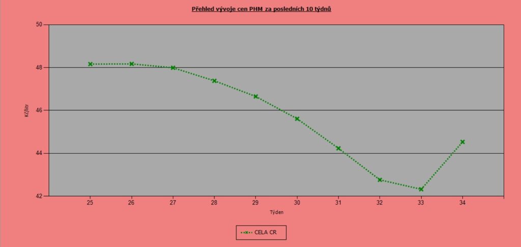 Po osmi týdnech zlevňování opět přišlo skokové zdražení. Nárůst 2,21 koruny za litr pocítili majitelé dieselových vozidel. Benzín na tom je o dost lépe, tam cena v průměru vzrostla o 15 haléřů na litru. Natural 95 nyní tankujeme v průměru za 40,45 Kč/l a za litr nafty zaplatíme 44,53 Kč.