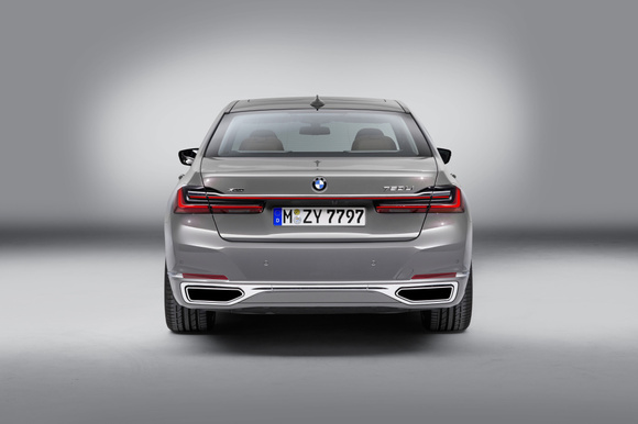 Modifikovaný zadní nárazník přebírá designový jazyk vstupů vzduchu na přední části vozu. Integrované koncovky výfuku mají širší chromované obložení, zadní světla nového BMW řady 7 s trojrozměrným designem jsou přibližně o 35 mm nižší než u předcházejícího modelu a mají do detailu propracovaný a precizní charakter. Jejich LED světelné zdroje jsou umístěny za červenými a černými povrchy, uspořádanými tak, aby zdůraznily jejich typický tvar písmene L.
