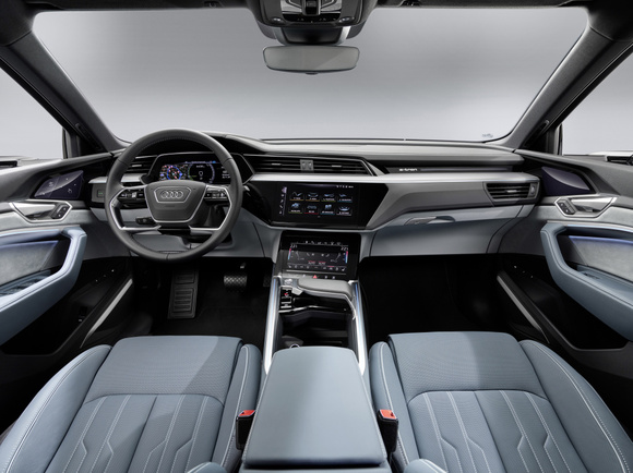 Stejně jako všechny modely Audi vyšší třídy je i e-tron Sportback vybaven systémem ovládání MMI touch response se dvěma displeji. Po aktivaci funkce prstem následuje potvrzení haptickým a akustickým impulzem. Na horním dotykovém displeji s úhlopříčkou 12,1 palce ovládá řidič informační, zábavní, telefonní i navigační systém a speciální nastavení e-tron. Spodní displej s úhlopříčkou 8,6 palce slouží k vkládání textu a ovládání komfortních funkcí včetně klimatizace. Struktura menu je intuitivně logická a plochá jako na chytrém telefonu, grafické řešení přehledné a minimalistické.