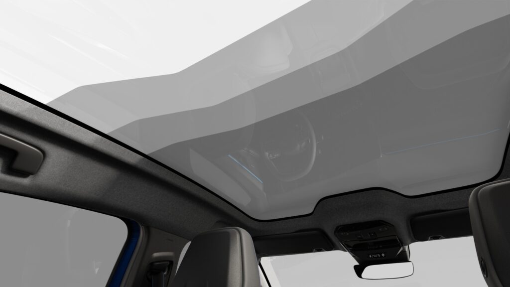 Interaktivní skleněná střecha byla vyvinuta společností Saint Gobain a má velkorysé rozměry 1 470 x 1 117 mm. Díky technologii “AmpliSky” se obejde bez krycí clony. Jedná se o aktivní systém, který se kompletně zatemňuje na požádání a je založen na posunu molekul způsobeném elektrickým polem. Maximální ochrana proti slunečnímu záření je zajištěna okamžitě a “wow” efekt je zaručen animací vytvořenou postupným zatemněním devíti segmentů pokrývajících povrch skleněné střechy. Interaktivní skleněnou střechu Solarbay lze ovládat hlasem prostřednictvím služby Google Assistant nebo tlačítkem na stropním panelu.