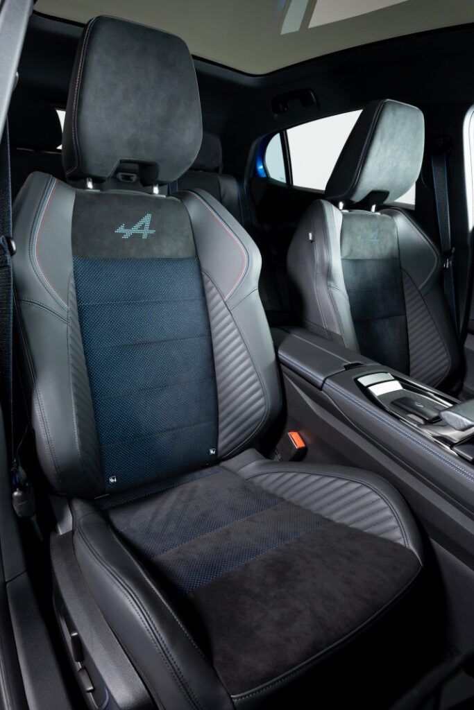 Nová sedadla mají boční vedení nabízející obzvláště dobrou boční a podélnou oporu. Čalounění Revolution Alcantara pomáhá podpírat řidiče a přispívá ke sportovní atmosféře, nemluvě o tom, že je ekologicky zodpovědné, neboť se jedná o první Alcantaru, která je z 61 % recyklovaná. Je natolik inovativní, že nový Rafale je po Ferrari Purosangue teprve druhým vozem, který ji používá. U verze esprit Alpine nového Renault Rafale je Alcantara na sedadlech perforovaná a je do ní integrované osvětlené logo Alpine.