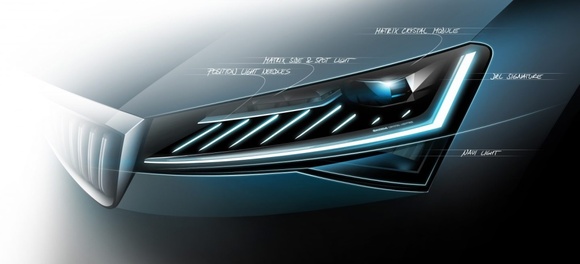 LED matrixové světlomety s adaptivní funkcí a krystalickými prvky mají na krytech nápis Škoda Crystal Lighting a nabízí různé světelné módy pro různé jízdní situace a povětrnostní podmínky. Světlomety se skládají ze společného LED modulu pro potkávací a dálková světla, tři další LED segmenty plní funkci dálkových světel, jeden modul přisvěcuje v zatáčkách. LED pruh slouží jako směrové světlo, světlo pro denní svícení a obrysové světlo. Posledním komponentem je LED řasa využívaná při animované funkci Coming/Leaving Home.
