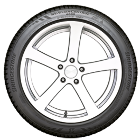 Pneumatiku Bridgestone Weather Control A005 lze v souladu s legislativními požadavky používat 365 dní v roce díky optimálním provozním vlastnostem na sněhu, které dokládá symbol tří horských štítů a sněhové vločky. Navíc se vyznačuje také vynikající životností, která je srovnatelná s prémiovou letní cestovní pneumatikou Turanza T005.