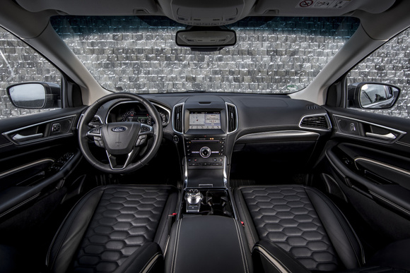Nový Edge Vignale kombinuje moderní design s tradičním řemeslným zpracováním. K jeho specifickým detailům patří chromované rámečky předních mlhových světel, maska Ford Vignale s charakteristickým šestiúhelníkovým vzorem a 20" kola z lehké slitiny. Sedadla a dveřní výplně jsou čalouněny kůží Windsor se šestiúhelníkovým vzorem ozdobného prošívání. Kůže se objevuje rovněž na středové loketní opěrce a palubní desce.