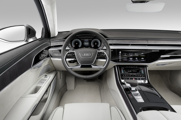 S více než 40 asistenčními systémy stanovuje A8 nová měřítka ve svém segmentu. Jako první sériově vyráběný automobil na světě bylo nové Audi A8 vyvinuto speciálně pro jízdu s vysokou mírou automatizace. Funkce autonomní jízdy v dopravní koloně zajistí řízení v popojíždějící dopravě při rychlosti jízdy až 60 km/h na dálnicích a hlavních tazích se stavebně oddělenými protisměrnými jízdními pruhy. Od roku 2018 bude Audi postupně uvádět do sériové výroby, v závislosti na legislativě v příslušných zemích, autonomní jízdní funkce, například pro automatické zaparkování vozidla do volné mezery nebo garáže a pro automatickou jízdu v dopravní koloně. Centrální řídicí jednotka pro asistenční systémy poprvé během autonomní jízdy nepřetržitě vypočítává obraz okolí z fúze dat získávaných od senzorů. Kromě radarových senzorů, přední kamery a ultrazvukových senzorů používá Audi za tím účelem, jako první výrobce automobilů vůbec, také laserový skener.