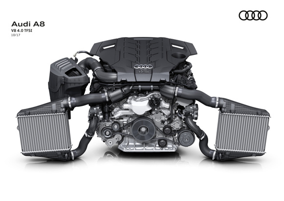 Zážehový motor V6 3.0 TFSI s přímým vstřikováním benzinu a přeplňováním turbodmychadlem poskytuje nejvyšší výkon 250 kW (340 k) a maximální točivý moment 500 N.m. Audi A8 tak zrychlí z 0 na 100 km/h za 5,6 sekundy, A8 L za 5,7 sekundy. Hodnoty kombinované spotřeby paliva jsou u obou karosářských variant mezi 7,8 a 7,5 l/100 km, hodnoty emisí CO2 mezi 178 a 171 g/km. Obě motorizace jsou standardně spojeny s osmistupňovou automatickou převodovkou tiptronic a prověřeným pohonem všech kol quattro. Vůz A8 jako první použije nové označení motorizace a technologií ingolstadtské automobilky, s motorem 3.0TDI ponese označení Audi A8 50 TDI quattro, verze s 3.0TFSI bude značena Audi A8 55TFSI quattro.