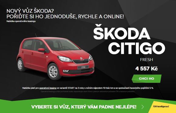 Domácí automobilka prostřednictvím nové online prodejní platformy nabízí zákazníkům jednoduchý a pohodlný způsob objednání operativního leasingu Škoda Bez starostí. V přehledném menu jsou zobrazeny dostupné vozy včetně informace o rychlosti dodání konkrétního vozu a základní měsíční splátce. Výběrem vozu se otevře stránka s plnou specifikací včetně technických údajů, kde je též možno zvolit variantu služeb Start nebo Komplet, délku pronájmu 24 nebo 36 měsíců, roční nájezd v rozmezí 10 000 až 40 000 km a spoluúčast pojištění ve výši 1 nebo 5 %. Po volbě varianty produktu se stačí již jen zaregistrovat do online prostředí Škoda přihlásit, vyplnit žádost o financování, zvolit autorizovaného prodejce pro předání vozu a operativní leasing objednat.