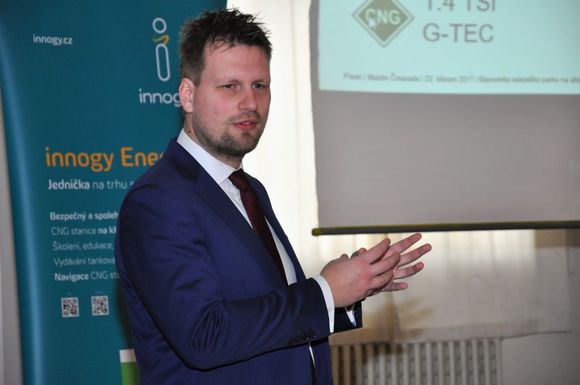 Setkání začalo po deváté hodině dopolední. Po uvítání a krátkém úvodu převzala slovo Markéta Veselá Schauhuberová ze společnosti Innogy, která nás seznámila s aktivitami spojenými s CNG. Innogy Energo je úspěšným provozovatelem 21 tankovacích stanic na zemní plyn u nás, přičemž každým rokem by mělo přibýt dalších 10 tankovacích míst.