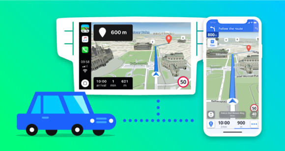 Když je chytrý telefon spárován s vozidlem s aktivovanou technologií Apple CarPlay, aplikace Sygic pak již není ovládána přes tento telefon. Informace z aplikace jsou automaticky zobrazovány na displeji vozidla a spojeny s hlasovým ovládáním, díky čemuž řidič může sledovat provoz kolem sebe a nemusí sundávat ruce z volantu.
