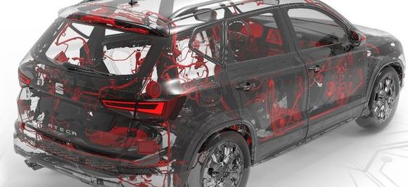 Komplexně uspořádané kabely o délce více než 2,2 km připomínají v modelu SEAT Ateca tepny, žíly a vlásečnice lidského těla. Elektronické systémy umožňují vozidlu reagovat na zapnutí jakékoli funkce během zlomku sekundy.
