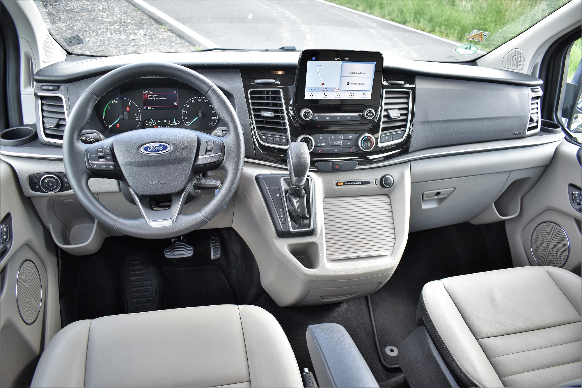 Zajímavý plug-in hybrid je k dispozici jak v užitkové verzi Transit Custom, tak v luxusnější osmimístné verzi Tourneo Custom. Pohon sériového uspořádání je vždy stejný. Přední kola pohání výhradně elektromotor o výkonu 93 kW napájený vysokonapěťovým lithium-iontovým akumulátorem o kapacitě 14 kWh. Akumulátory jsou uloženy pod podlahou a tak vůbec nezasahují do vnitřního prostoru.