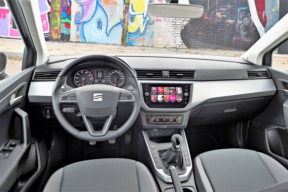 Přestože je Arona postavena na podlahové platformě ibizy, technicky i řadou výbavových prvků se víc blíží větší Atece. Vzpomeňme například adaptivní tempomat s funkcí Stop & Go, varování na auto jedoucí zpoza překážky při couvání či automatický parkovací asistent. Arona totiž dokáže sama zaparkovat mezi podélně i příčně stojící auta.