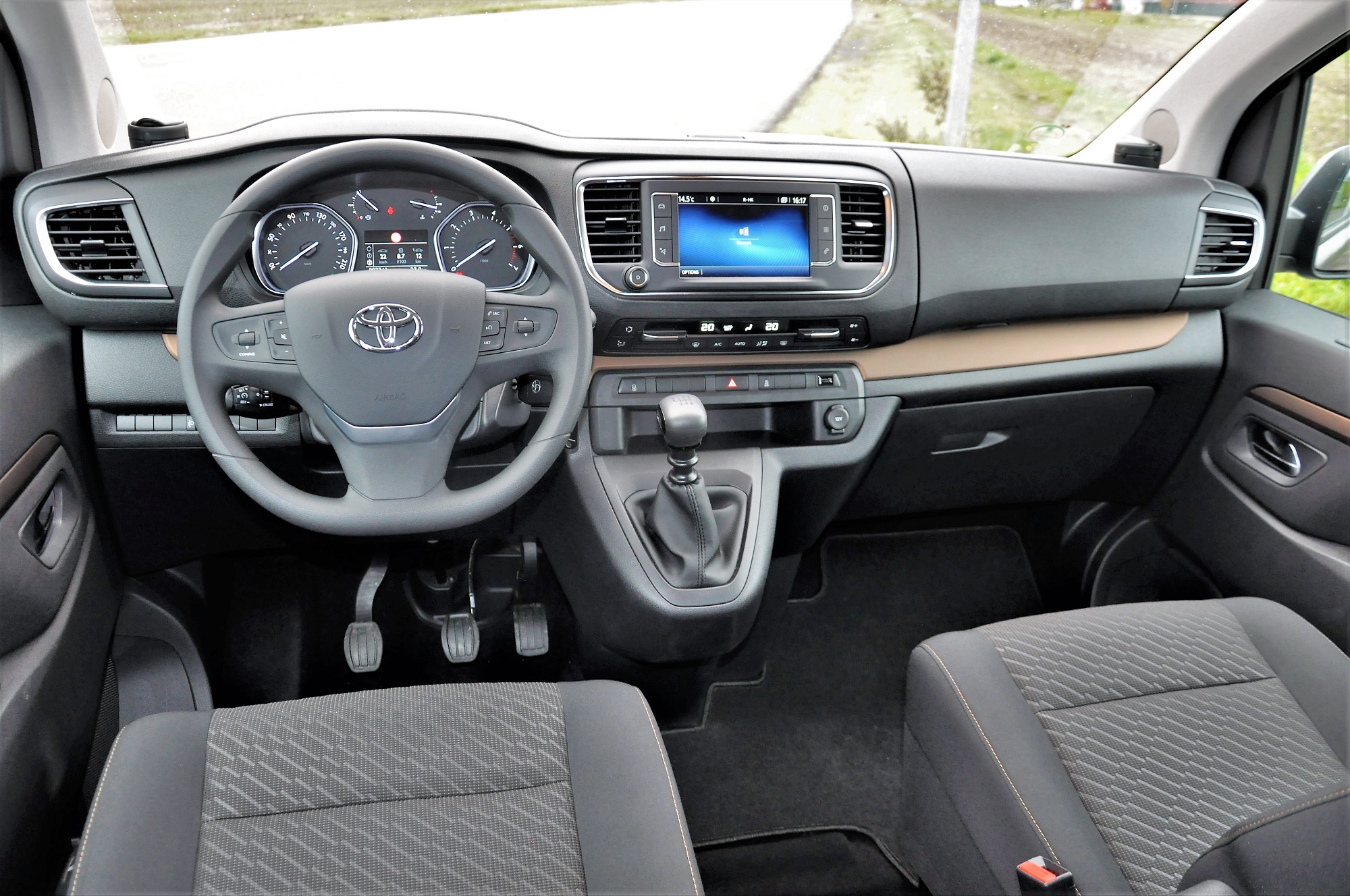 Toyota Proace tak výtečně supluje komfortní velkoprostorové automobily. Interiér je mimořádně dobře odhlučněný, odpružení staví na povedeném kompromisu a pocitově se řídí jako běžné osobní auto. Není bez zajímavosti, že všechny verze včetně té nejkratší mohou mít tři řady sedadel pro 8 nebo 9 cestujících.